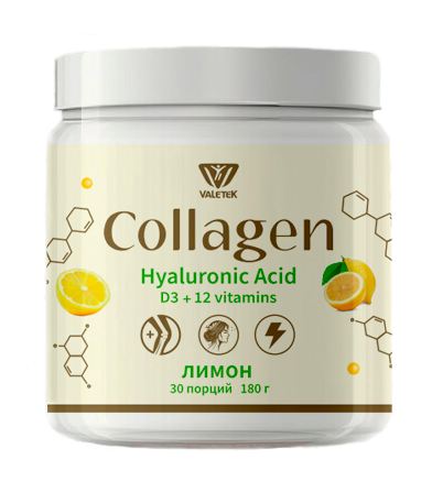 Напиток коллагеновый с витаминами "Valetek" 180 г, лимон