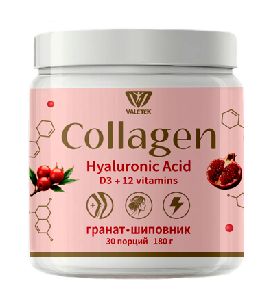 Напиток коллагеновый с витаминами "Valetek" 180 г, гранат-шиповник