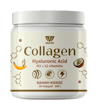 Напиток коллагеновый с витаминами "Valetek" 180 г, банан-кокос