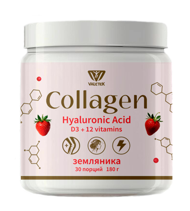 Напиток коллагеновый с витаминами "Valetek" 180 г, земляника